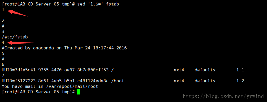 | = | 为模式空间中的行打印行号 |