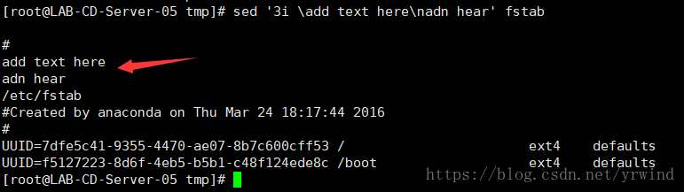 | i \text | 在行前面追加文本;支持使用\n实现多行追加 |