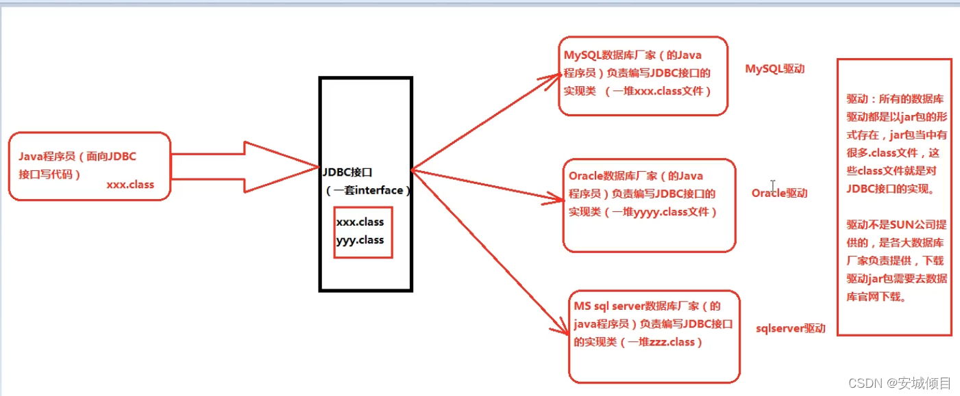 每一个数据库产品都有自己独特的实现原理,利用接口可以进行不同的实现。