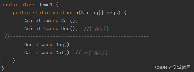 当有一个方法同时用Dog类和Cat类时,可以直接使用Animal类
