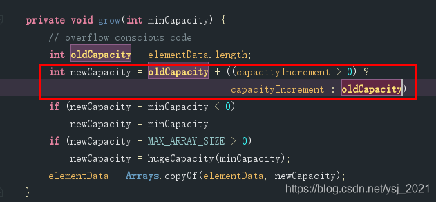 | 2、第一次添加元素,扩展容量为10,之后的扩充算法:原来数组大小+原来数组的一半 | 2、扩充的算法:当增量为0时,扩充为原来大小的2倍,当增量大于0时,扩充为原来大小+增量 |
