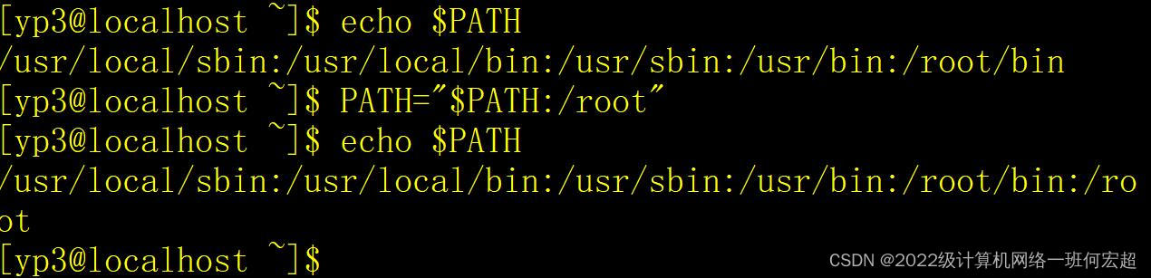 PATH=“$PATH:/root” ##将PATH变量值修改为原PATH变量值下的root文件夹
