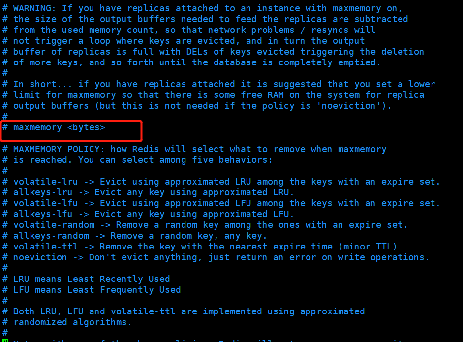 在配置文件redis.conf 中,可以通过参数 maxmemory <bytes> 来设定最大内存: