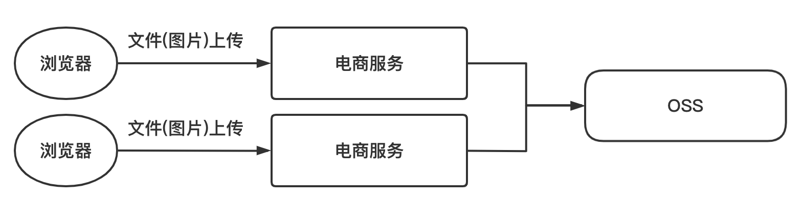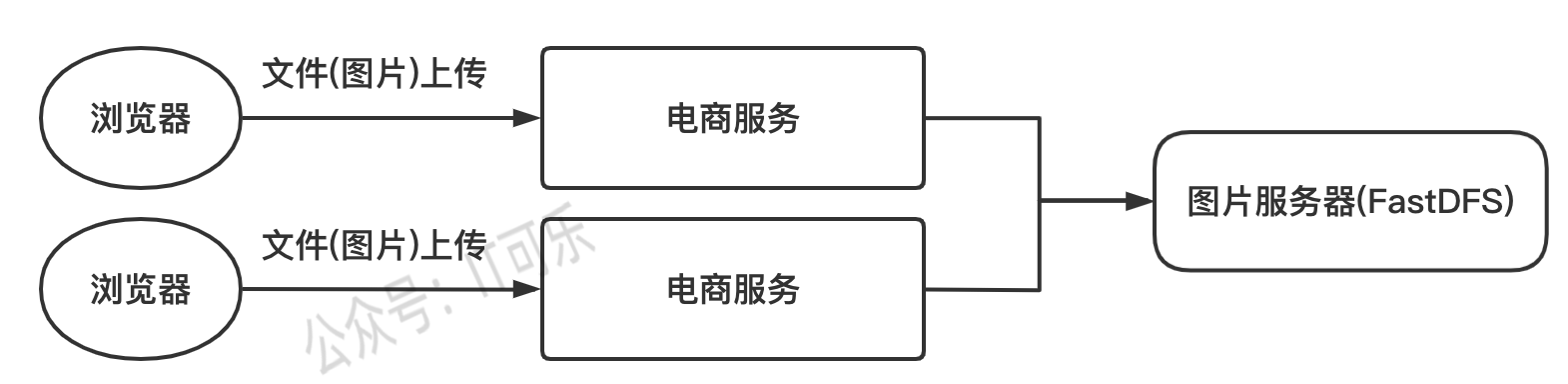 浏览器发现图片上传请求,经过我们的电商服务,然后服务将图片存储到我们的图片服务器。