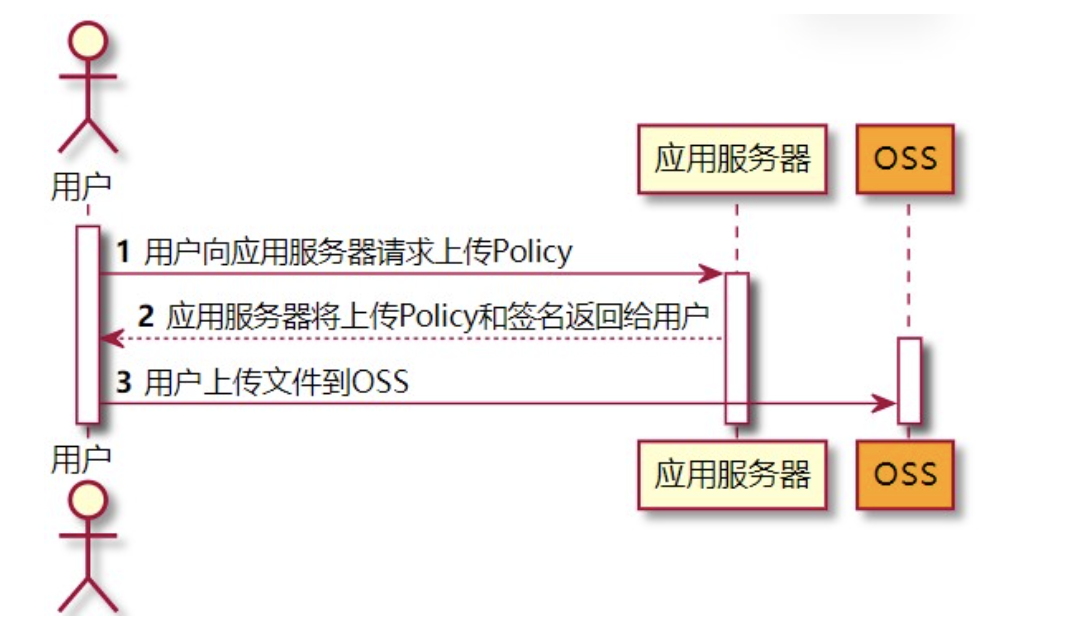 ①、服务端签名后直传是通过用户(浏览器)发起请求到我们自已的服务器中进行验证;