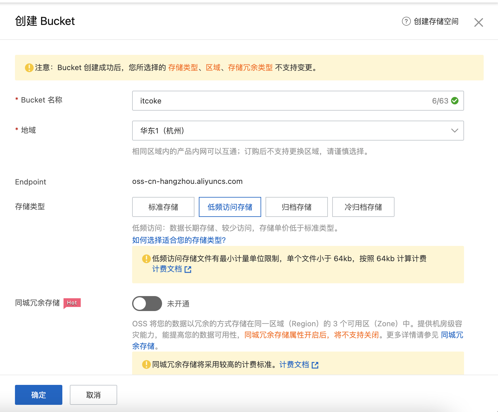 存储类型:低频访问存储