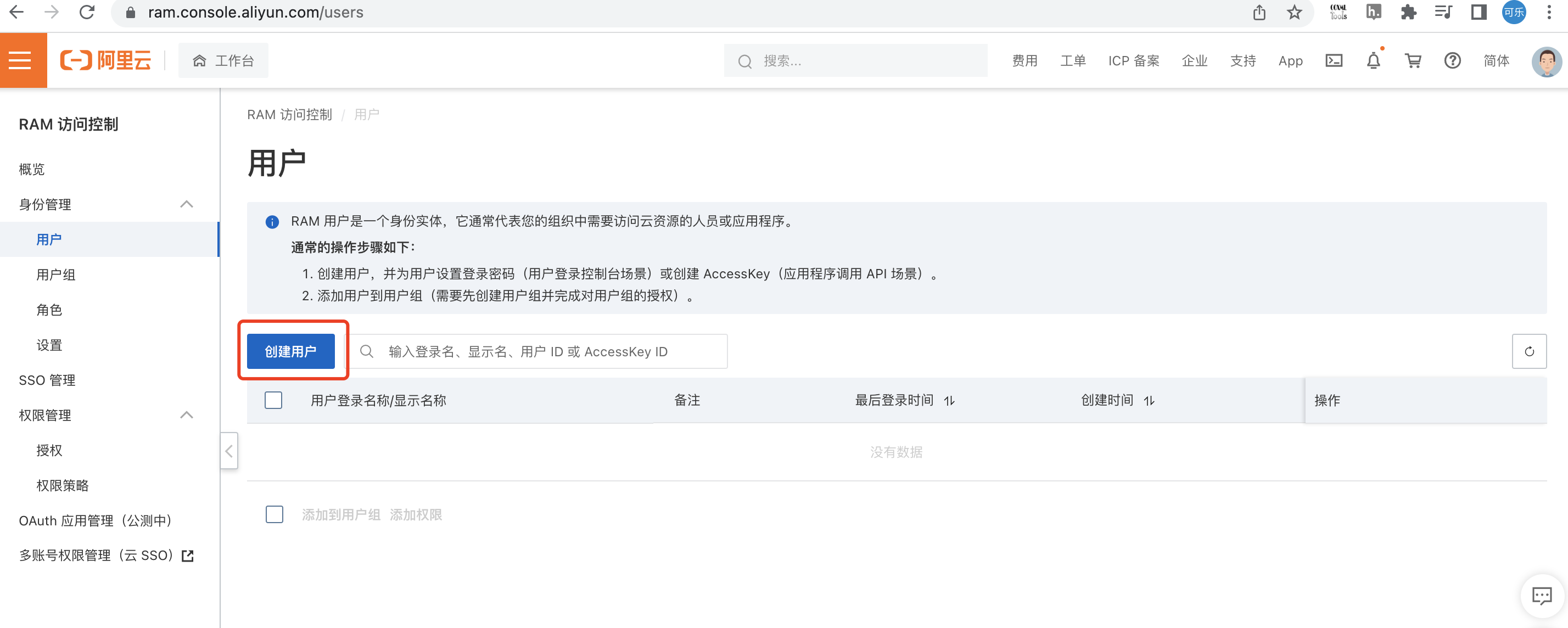 https://ram.console.aliyun.com/users