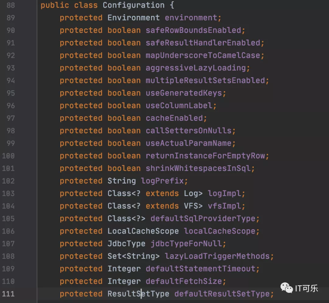 看到这是不是很熟悉了,这不就是mybatis-config.xml 配置文件里面的各个标签名嘛,是的,这就是解析该文件,然后全部放在 configuration 对象中。需要注意的是,这里的 configuration 对象不仅包括 mybatis-config.xml 文件内容,也包括 xxxMapper.xml 文件内容。