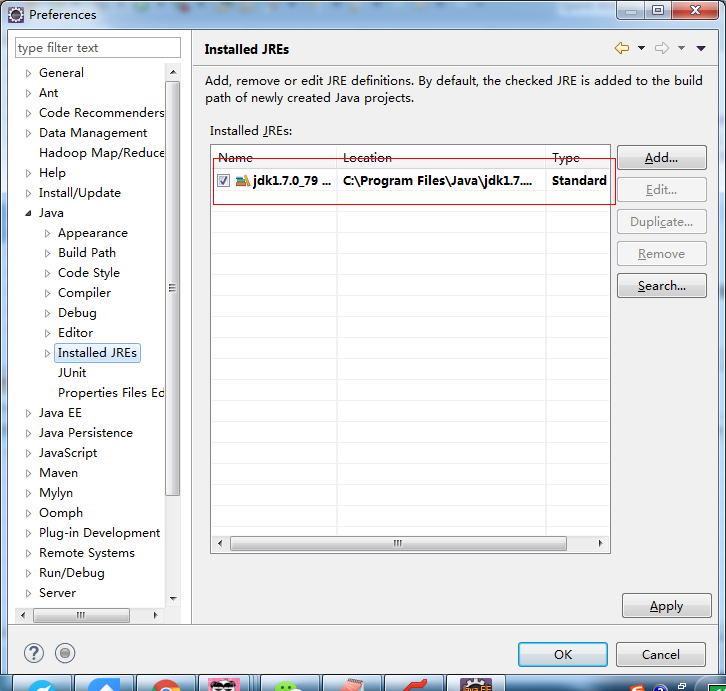 Windows---->Preferences---->Java---->Installed JREs