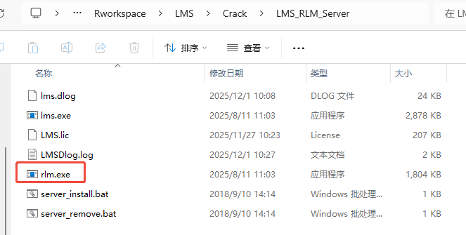②打开>> Crack / LMS_RLM_Server,找到并运行 rlm.exe