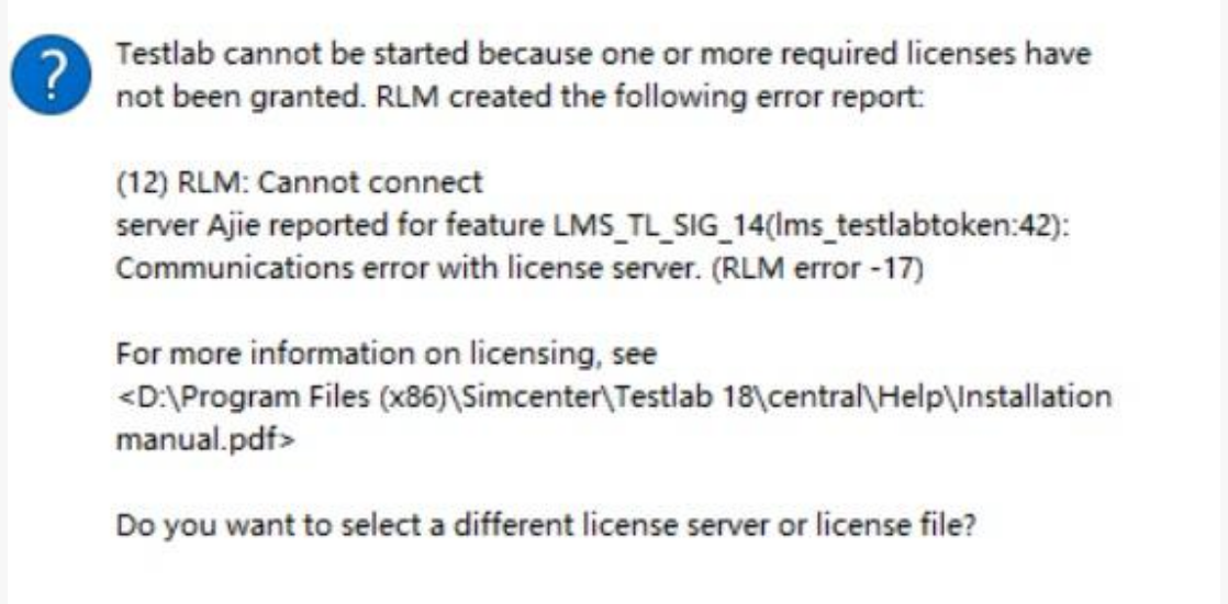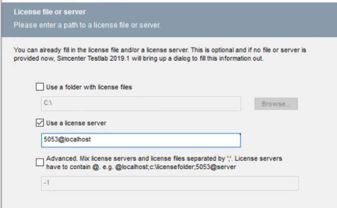安装Simcenter Testlab 2021.1及其他可选组件。在许可证设置界面选择“使用许可证服务器”,输入: