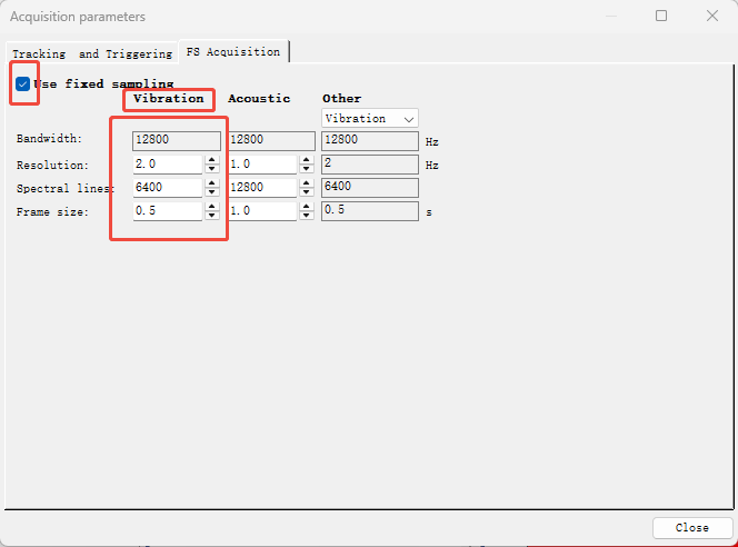>>FS Acquisition(在Tracking and Triggering里面设置好之后可以看到下面自动出现的值)