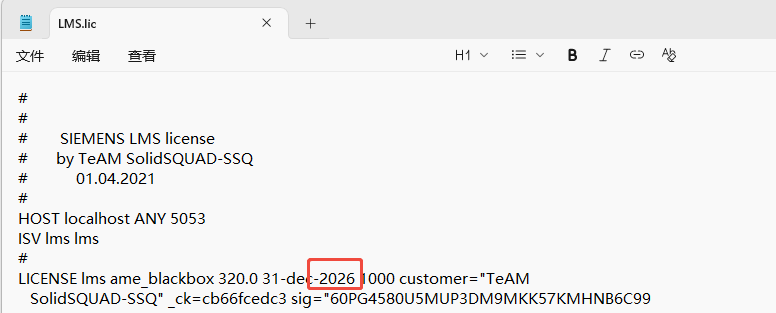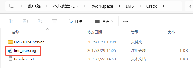在网上直接搜索最新的许可证,找到LMS.lic文件资源,拷贝替换>> Crack / LMS_RLM_Server里面的 LMS.lic 文件