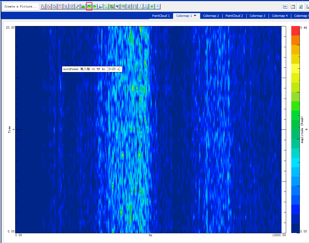 11、点击右侧的create picture区域---colormap,将waterfalls文件夹里面的文件拖进来,即可显示二维colormap(时频图)