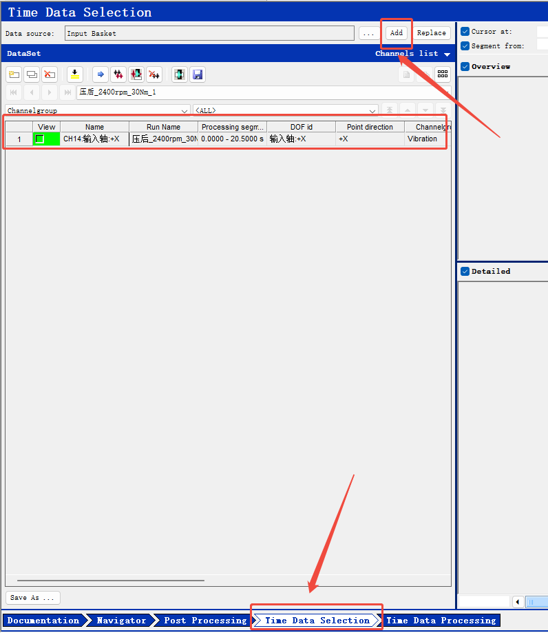 5、点击最下面Time Data Selection 模块,点击上面的add,可以看到数据加载出来了