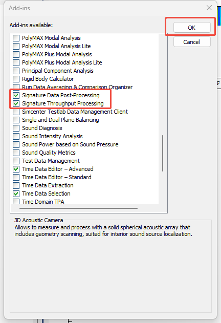3、点击菜单栏 Tools >> Add-ins ,勾选Signature Data Post-Processing,Signature Throughput Processing,然后在页面最下方就出现了Post processing和Time Data Processing。