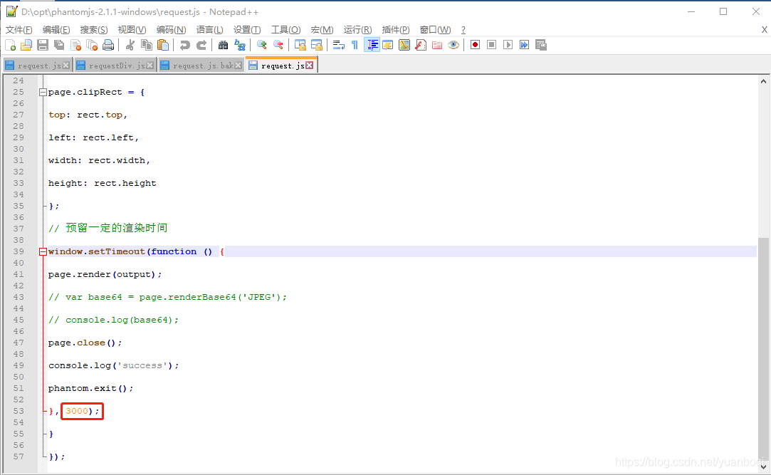 3.request.js、requestDiv.js可自行设置预留的渲染时间,我设置为3s。