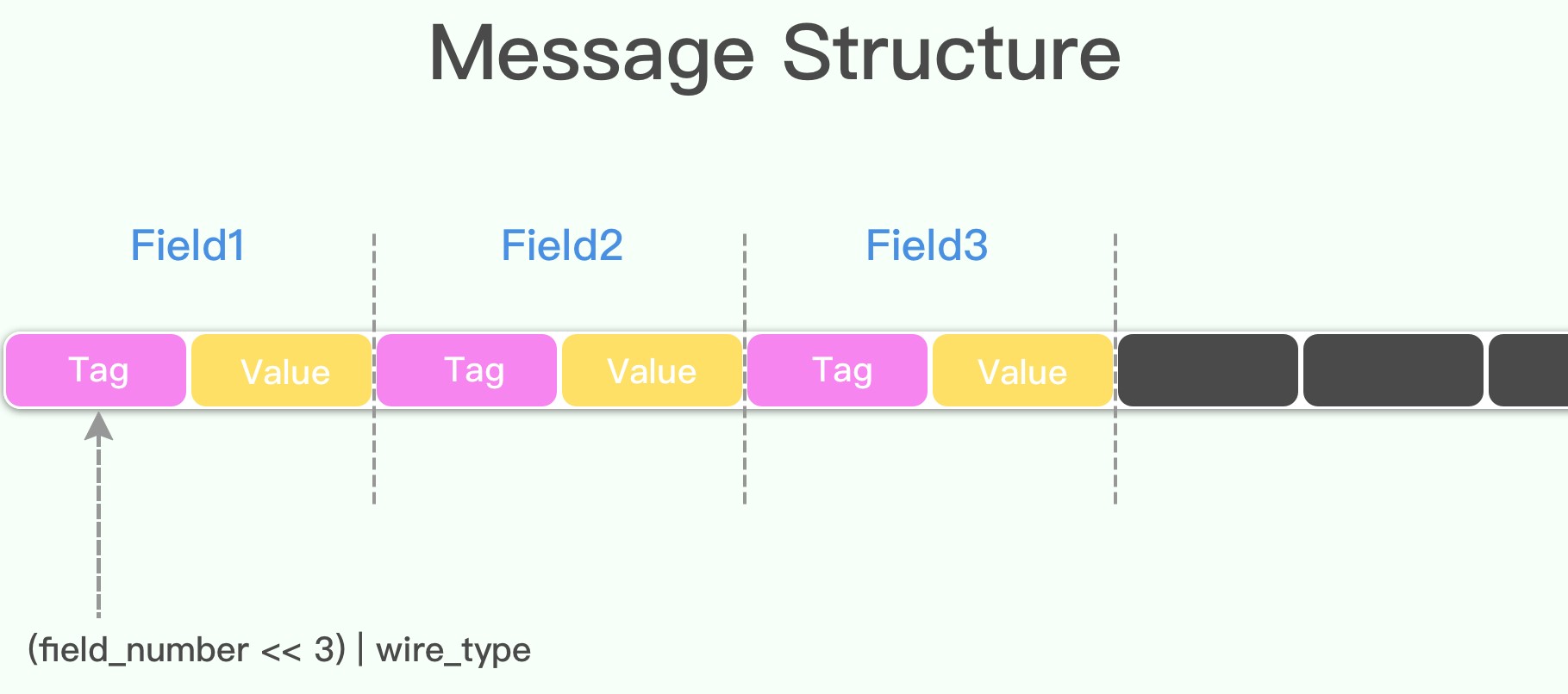 message 进行编码时, key 和 value 被串联成一个字节流。对 message 进行解码时,解析器需要能够跳过无法识别的字段。这样,可以将新字段添加到 message 中,而不会破坏不知道它们的旧程序。因此,key 被序列化时包含类型(wire_type)和编号(field’s num)。