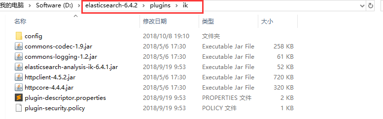 解压并将将文件复制到Elasticsearch的安装目录/plugin/ik下面即可,完成之后效果如下: