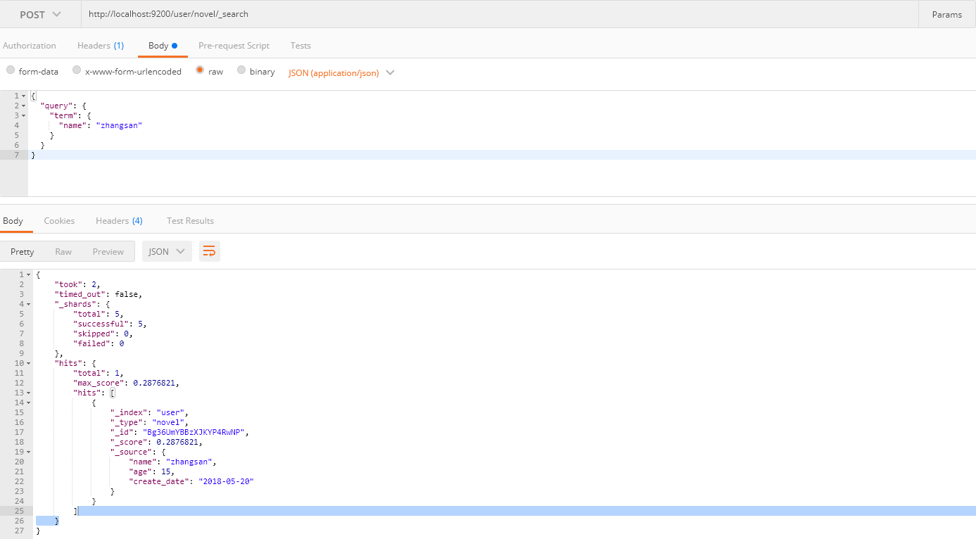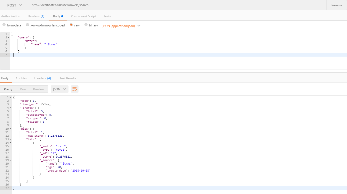 curl 'localhost:9200/user/novel/_search' -d '{"query":{"match":{"name":"jitwxs"}}}'