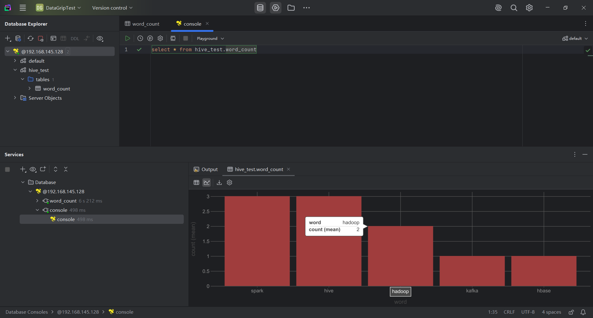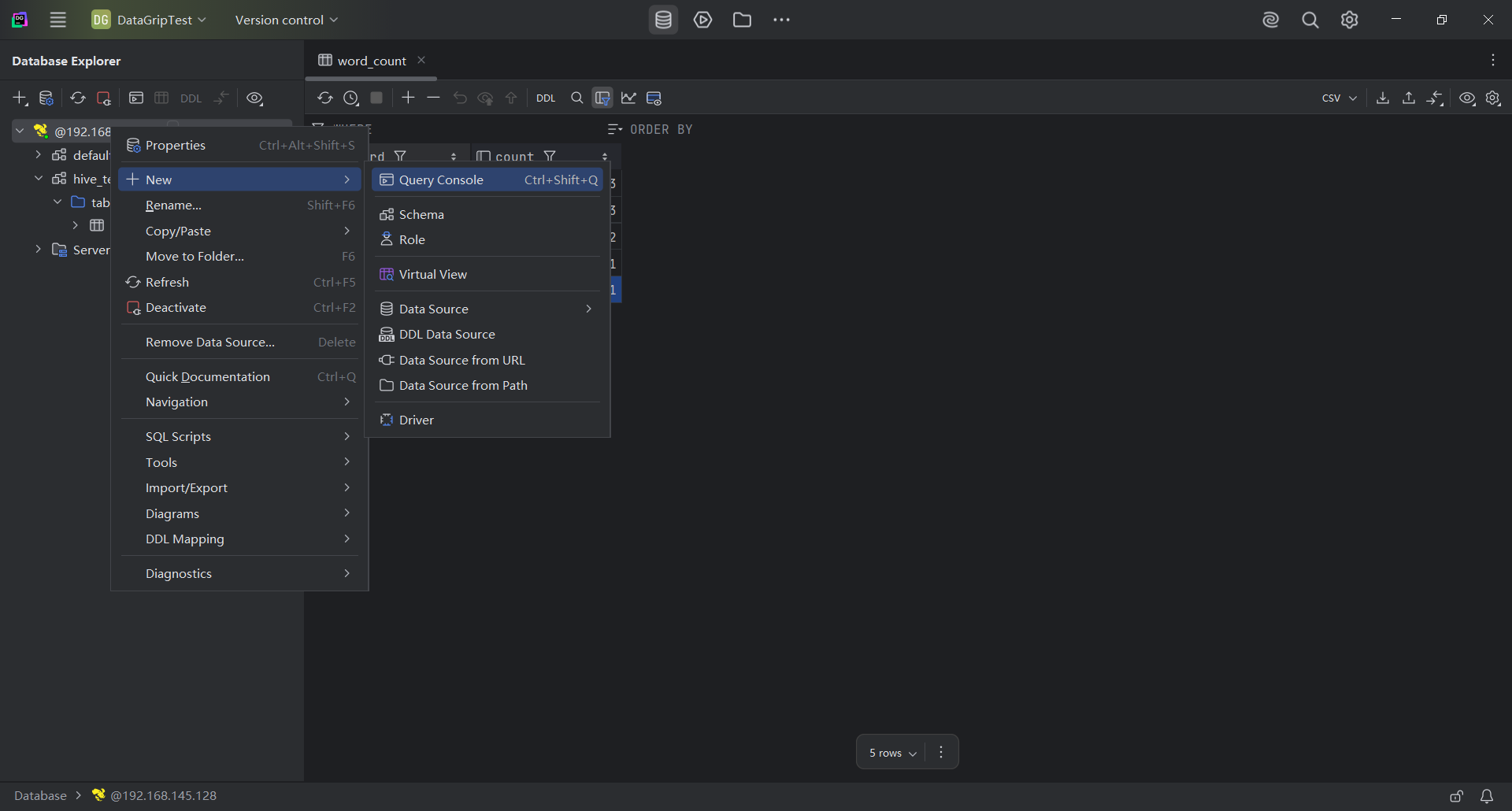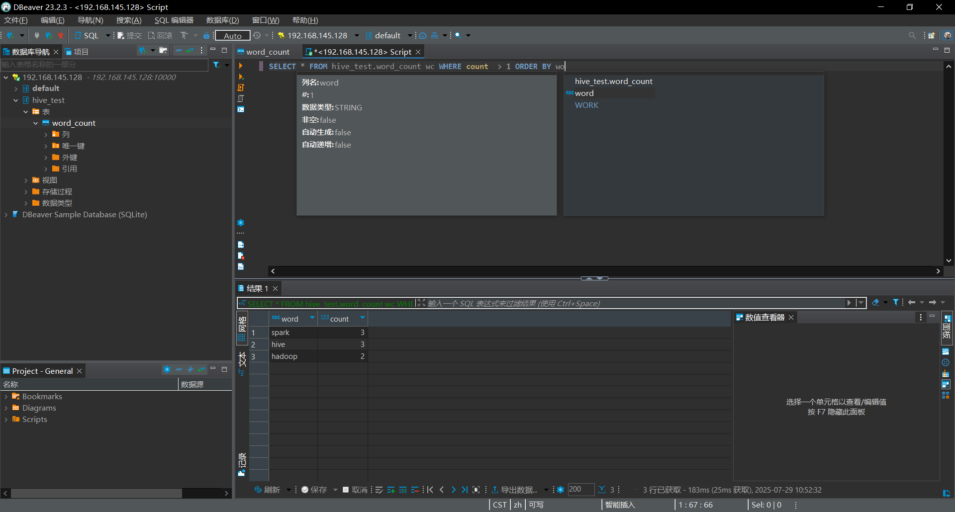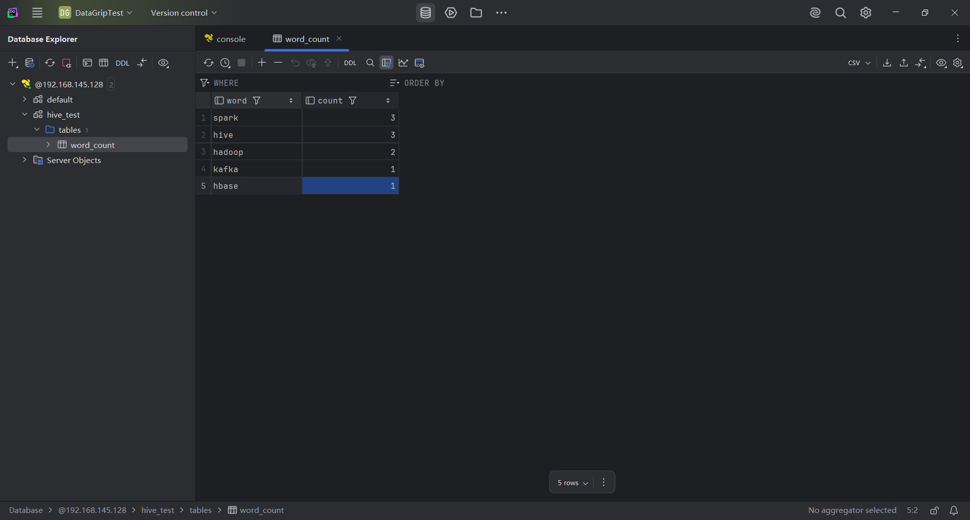 大名鼎鼎的 JetBrains 的产品无需多言,首次进行连接会下载 Hive 的驱动,很快就下载好了,这里不再复现下载过程,界面统一,用过它家产品的程序员就很容易上手了。