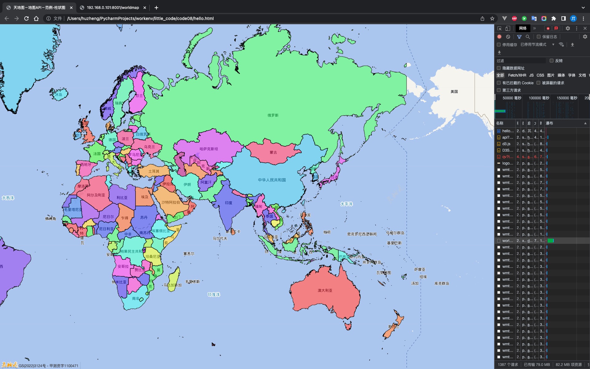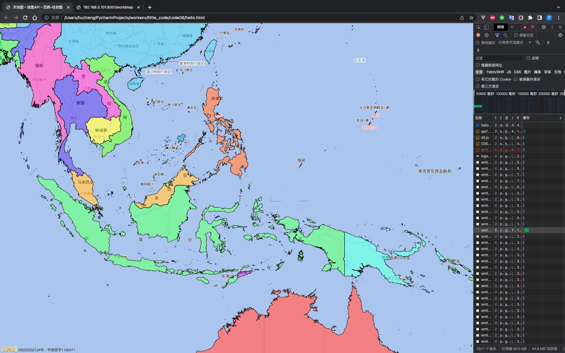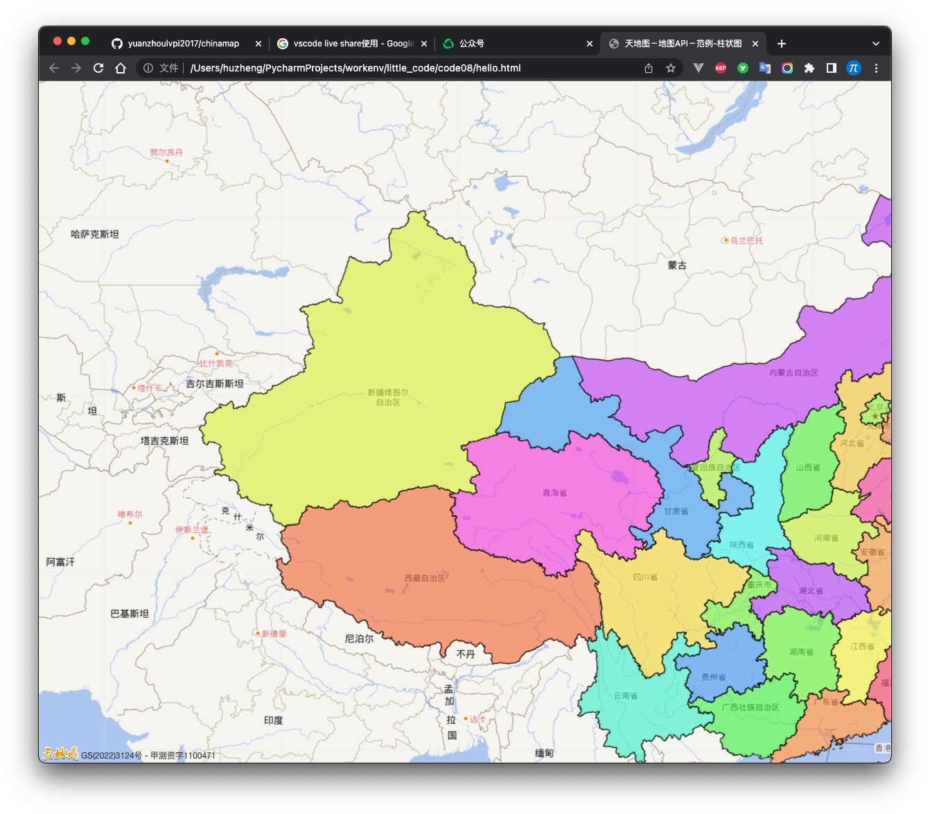 目前我正在测试天地图的可视化,下面分享几个截图,我后续会分享一系列的教程