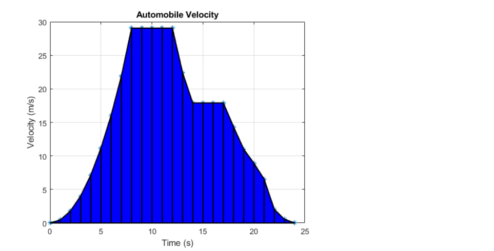 时间-速度变化曲线图都给我们了,其实,我们基于物理意义也就知道了:曲线下和x轴组成的面积其实就是行驶的路程。而求这个面积其实就是一个积分过程。