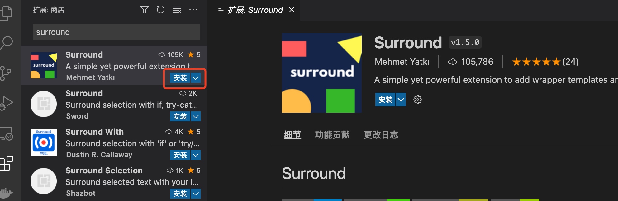 应用市场安装surround插件