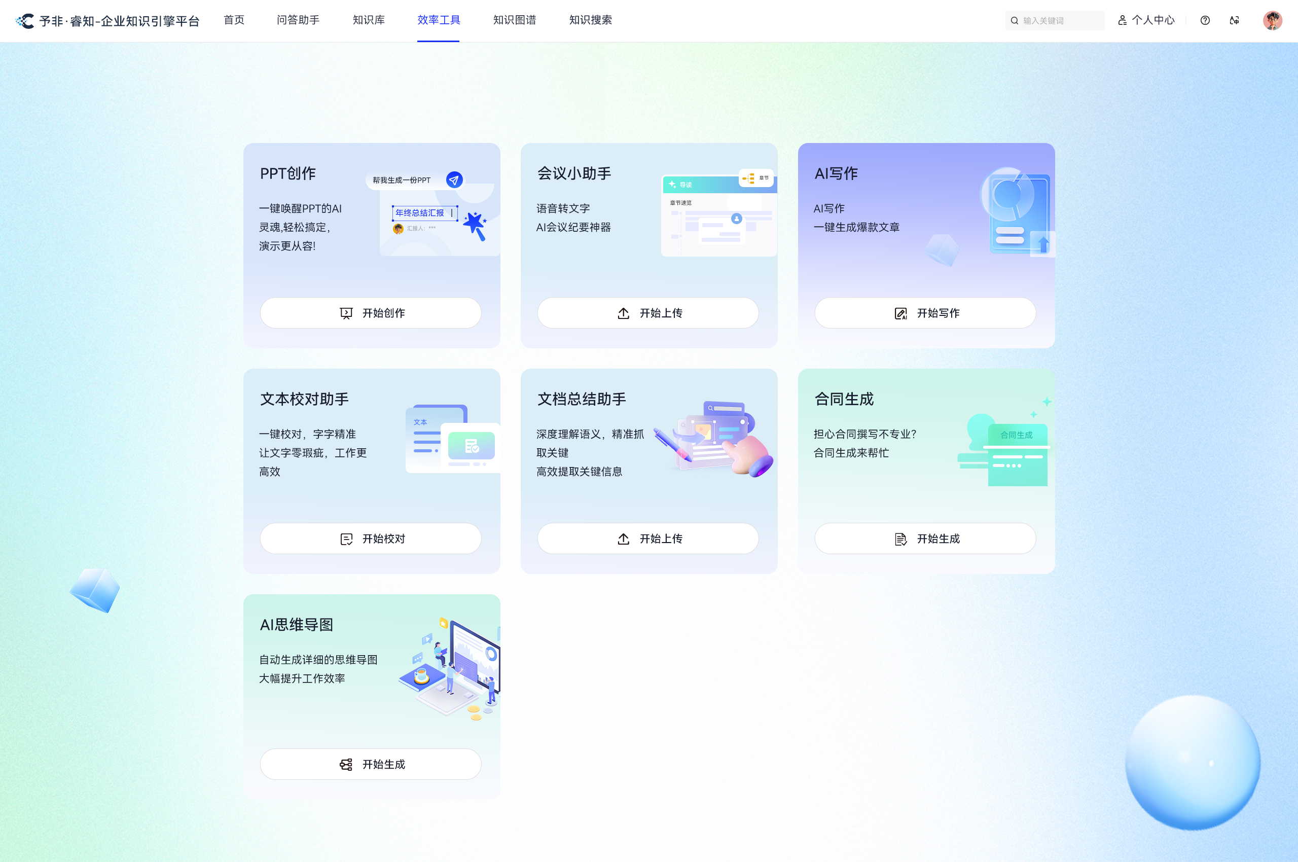 提供一站式效率工具矩阵,涵盖文本校对助手、会议小助手、AI 写作、PPT 创作、文档总结助手、合同生成等功能模块。支持离线运行的私有化部署,保障企业数据安全的同时,通过自动化生成、智能纠错、流程简化等功能,显著提升文档处理、会议记录、内容创作等日常工作效率,让知识价值在高效协作中快速释放。