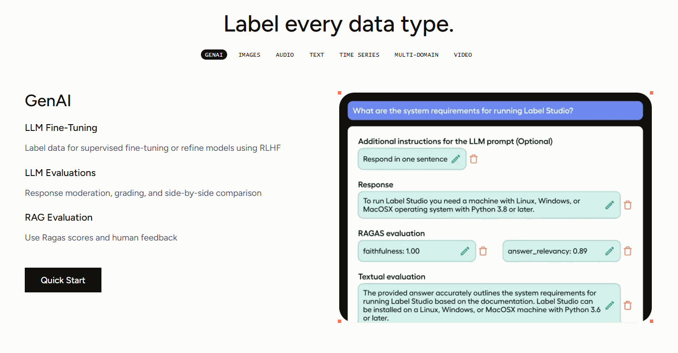 一个很牛的标注工具,支持类型非常广泛,模型对话、图片、视频、文本、时间、音频等等,几乎常见的数据类型都涵盖了。