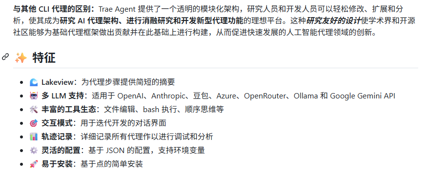第一次见字节这么大方,还是以MIT协议开放的,其实Anthropic之前也开源过agent的东西都是MIT协议。Trae这次也算是跟随了吧,前有Claude Cloud,后还有gemini cli。没什么特别可说的,有待提高…