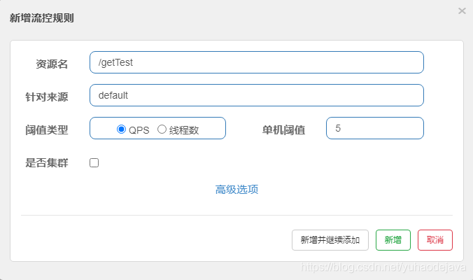 上图配置的意思是当请求/getTest资源的次数超过每秒5次,就对请求进行限流