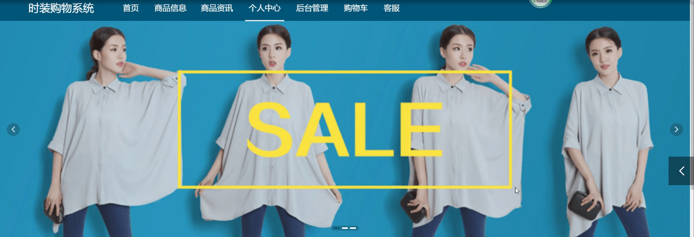 时装购物系统,在时装购物系统可以查看首页、商品信息、商品资讯、个人中心、后台管理、购物车、客服等内容,如图5-13所示。
