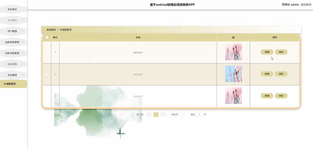 管理员点击系统管理:在系统管理页面,可以对轮播图管理等信息,进行查询、新增、查看评论或者删除系统信息等操作,如图5-8所示:
