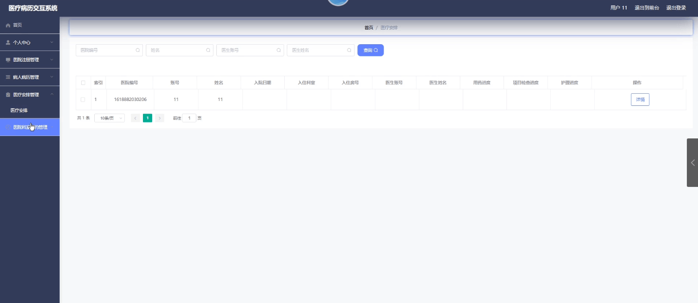 用户可以在医疗安排界面查看医疗安排信息。医疗安排页面的运行结果如图5-3所示: