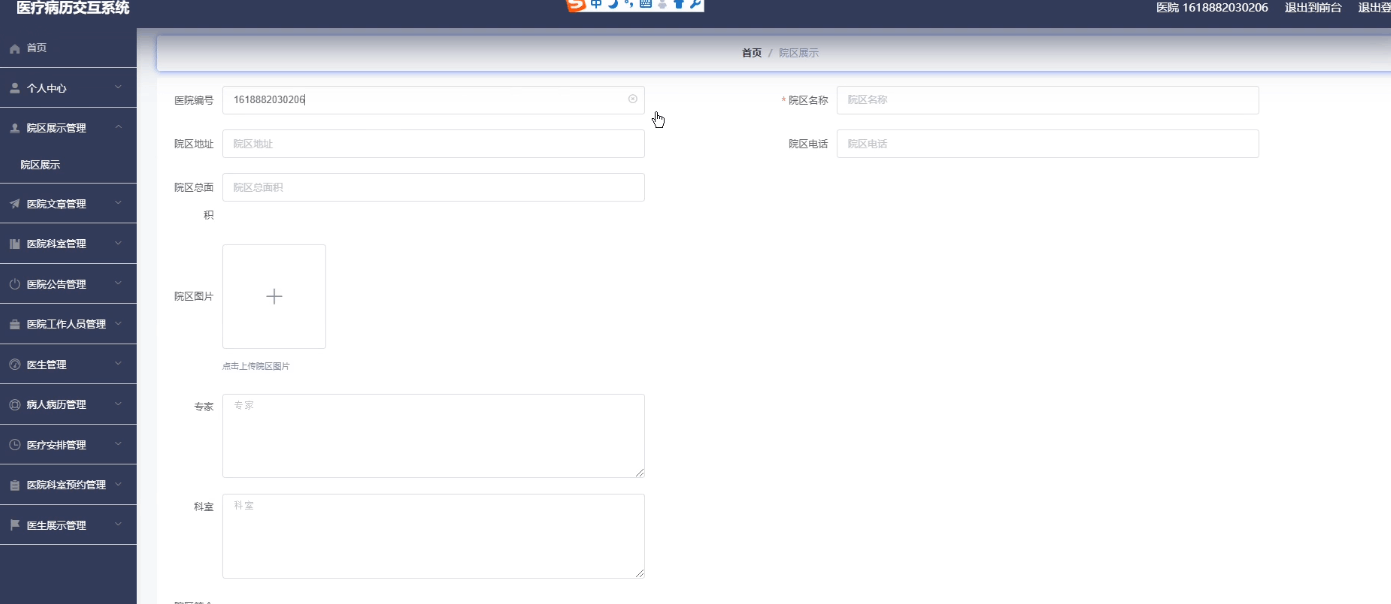 医院可以在院区注册界面对注册院区信息。院区注册页面的运行结果如图5-3所示: