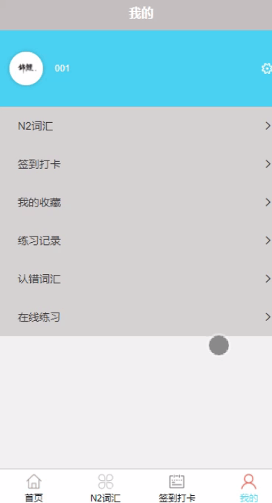我的,在我的页面可以填写N2词汇、签到打卡、我的收藏、练习记录、认错词汇、在线练习等信息进行提交,如图5-4所示。
