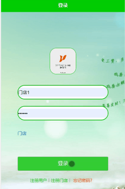 门店登录,在登录页面填写门店账号、密码进行登录如图13所示。