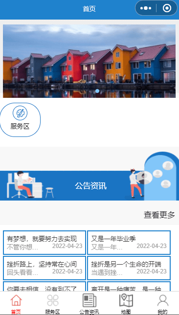 搭建JAVA环境后,进入到小程序首页,首页包括头部的logo,导航条,中间部分的高速公路服务区信息。