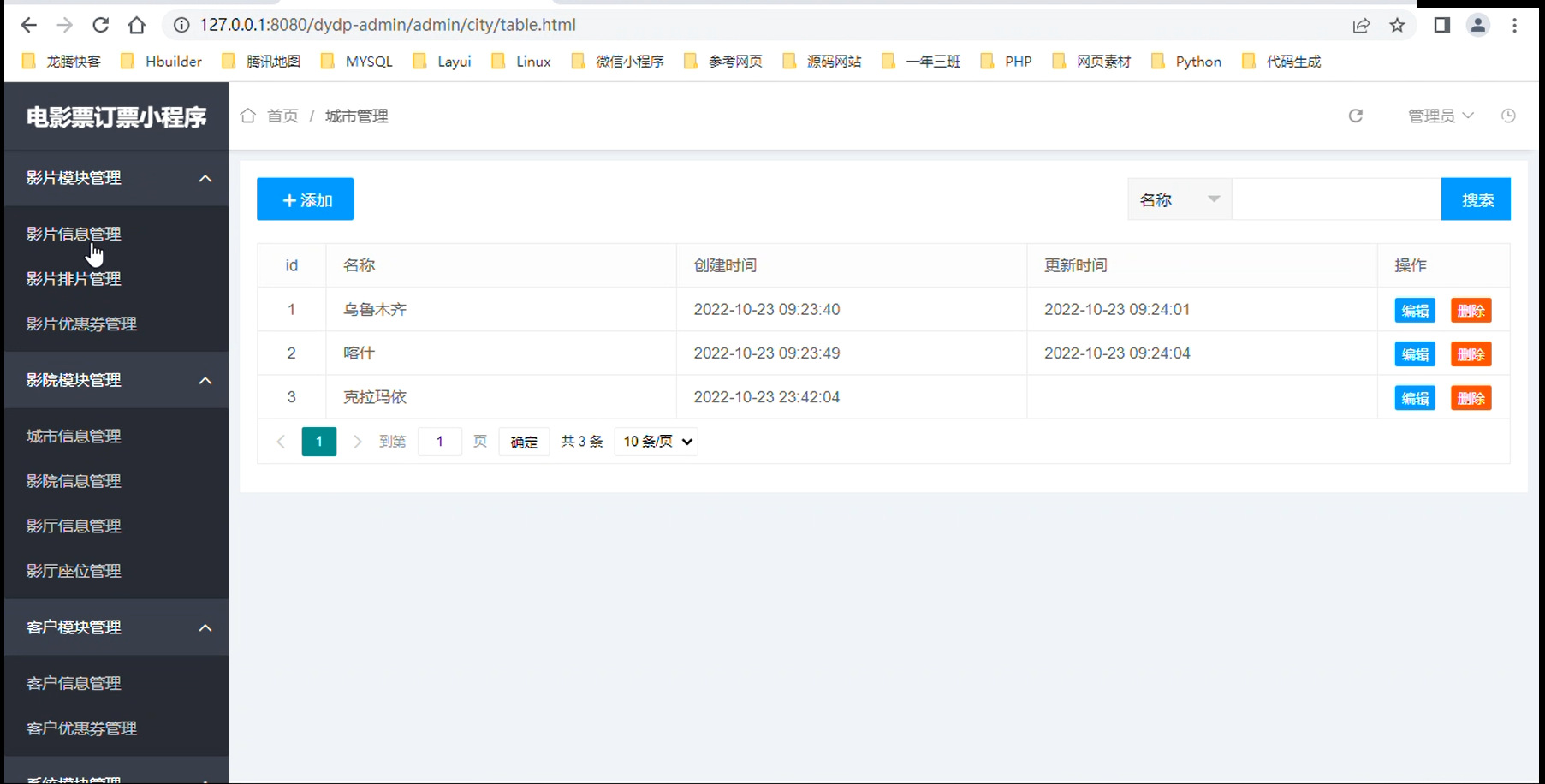 在信息的添加页面当中,除了一些必要的。属性之外还是提供编辑和删除的功能,同时也支持当数据量大时进行一个模糊搜索以及类别搜索,这样一来管理人员可以快速的定位到想要找的数据。如下图所示: