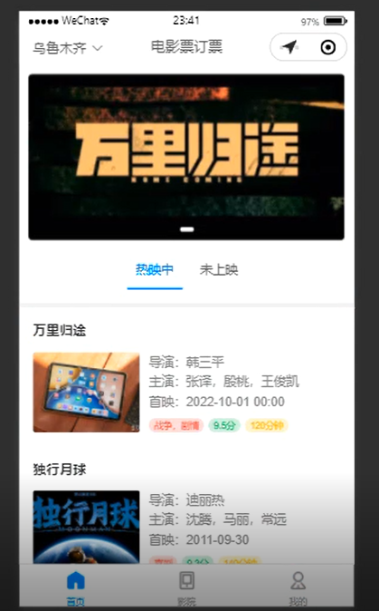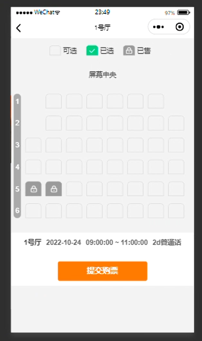 在小程序中可以根据我们想选择的位置来进行购票,如下图所示: