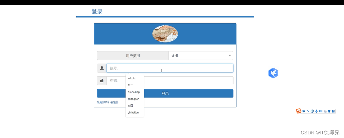 系统在设计页面风格的过程当中,其实我也有请教我的美工同学,也让他帮助我进行一个主题色以及背景色的构建,那么对于管理员来说呢,主要是使用他的登录功能。这样的话,在用户名密码时突出显示,就能够更好地让用户感受到。其页面如下图所示: