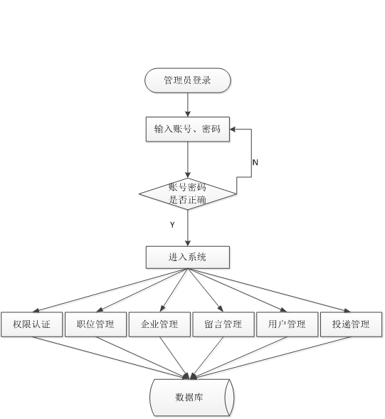 系统的业务流程,也表示着其流程的走向,在用户眼里登录流程、输入密码、用户名只是一个简单的验证,但其实在软件系统当中并不如此。在管理员或者员工输入用户密码时,要随机生成一个session,在session当中会有一些判断的信息,比如说用户名、密码以及。相关的属性信息,只有这些信息全部正确之后,才能够根据权限再调出相应自己的界面,达到登陆成功。那么当验证不正确的时候,其实还是要回调到我们所需要验证的信息。举个日常的例子来说,当我们输入银行卡密码的时候,密码不正确时还会让我们再次输入密码,只不过银行卡的密码有所限制,我们的登录其实也会进行一些相应次数的限制。如下图所示: