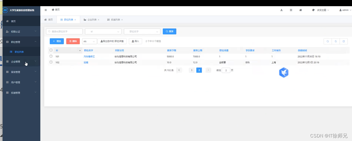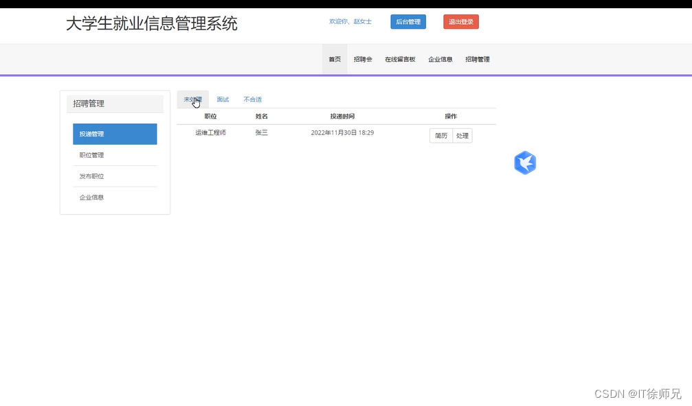 投递管理当中有着很多用户投递来的简历。如下图所示: