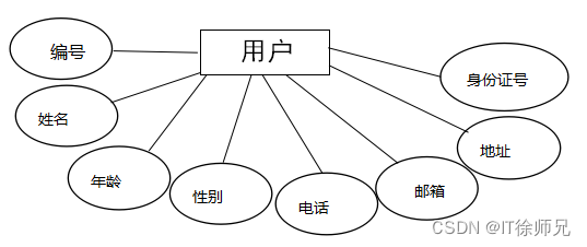 用户信息属性包括:编号,姓名,性别,年龄,电话,邮箱,地址,身份证号。具体如下图所示。