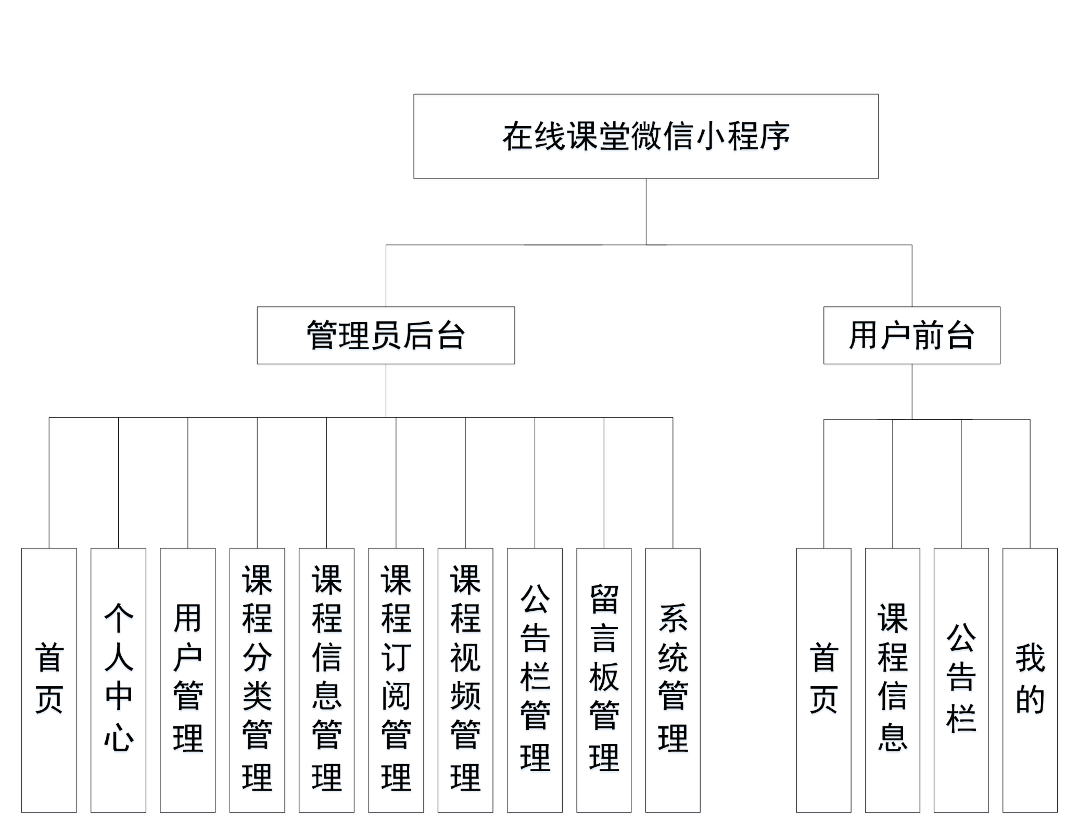 这些功能可以充分满足在线课堂微信小程序的需求。此系统功能较为全面如下图系统功能结构如图所示。