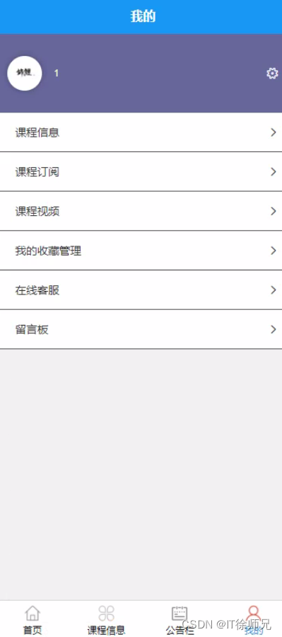 用户进入我的页面可以查看课程信息、课程订阅、课程视频、我的收藏管理、在线客服、留言板等信息,进行相对应的操作,如图所示。
