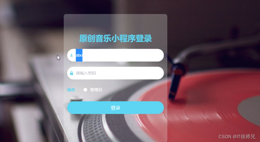 用户通过到界面,通过界面的原创音乐小程序,可以进行通过注册输入用户账号、密码、用户姓名、性别、年龄、用户手机等信息,进行注册操作,如图5-6所示。用户通过登录页面,输入账号、密码、验证码输入无误后进行登录操作,如图所示。