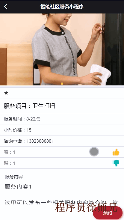 Java基于SSM框架的智能社区服务小程序,管理员功能有个人中心,用户管理,房屋信息管理,住户信息管理,家政服务管理,家政预约管理,报修信息管理,物业缴费管理,留言板管理,系统管理等。用户可以注册登录,查看房屋信息,预约家政服务,报修,缴费等。因而具有一定的实用性。