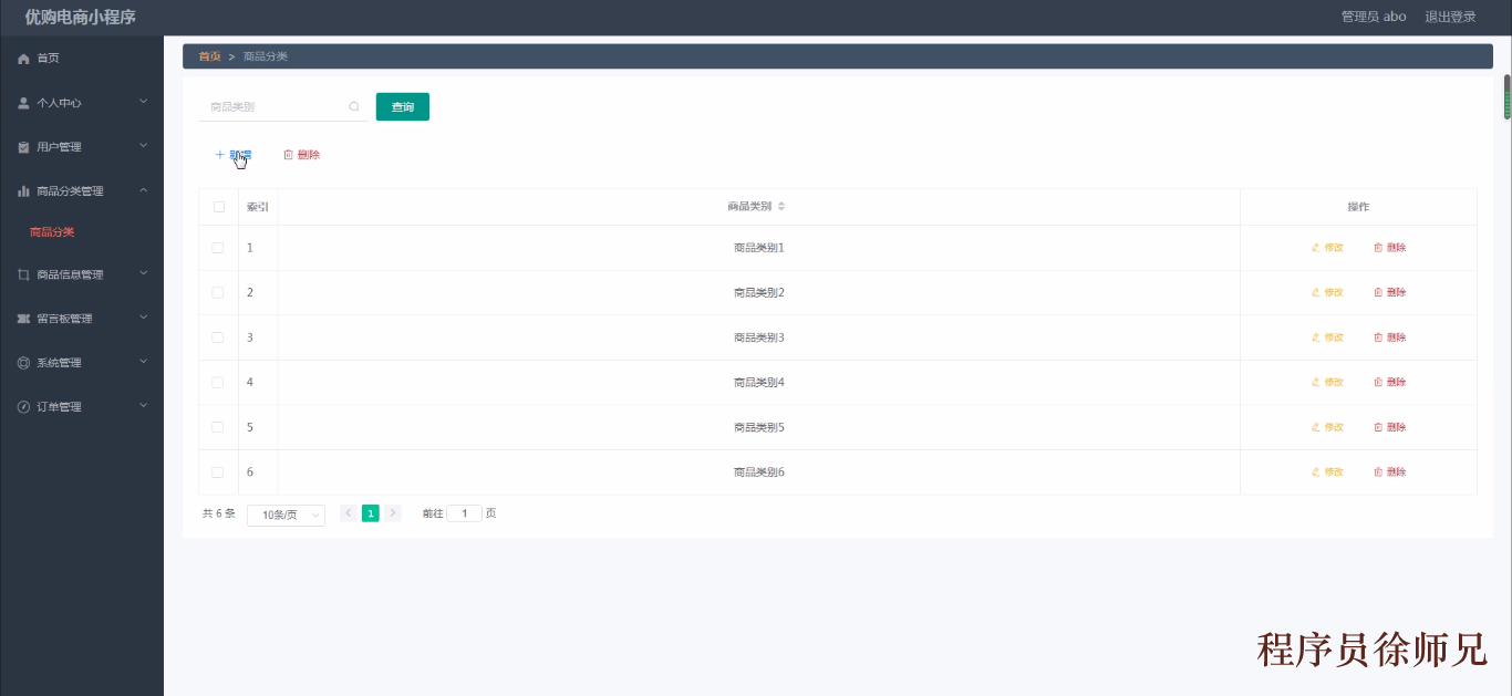 商品分类管理,通过填写商品类别等信息进行修改、删除操作,如图5-13所示。